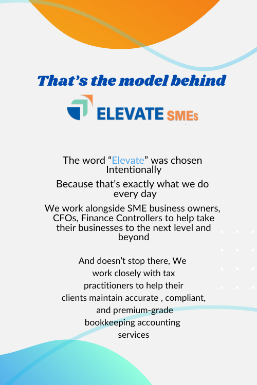 I have always been impressed by the consistent, high quality service delivered by Elevate SMEs Booking and payroll management and would highly recommend their services to anyone looking for a hard-working company in the Bookkeeping sector.